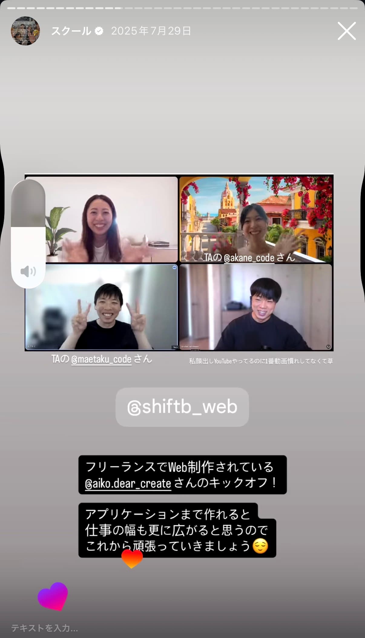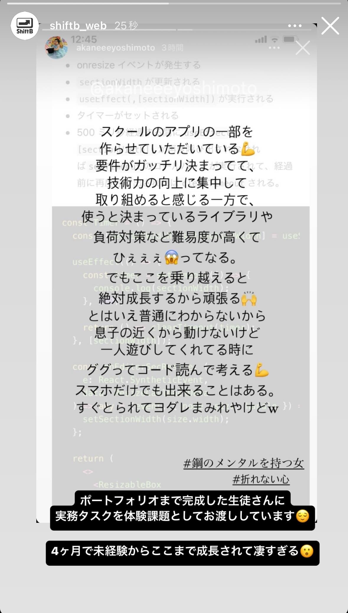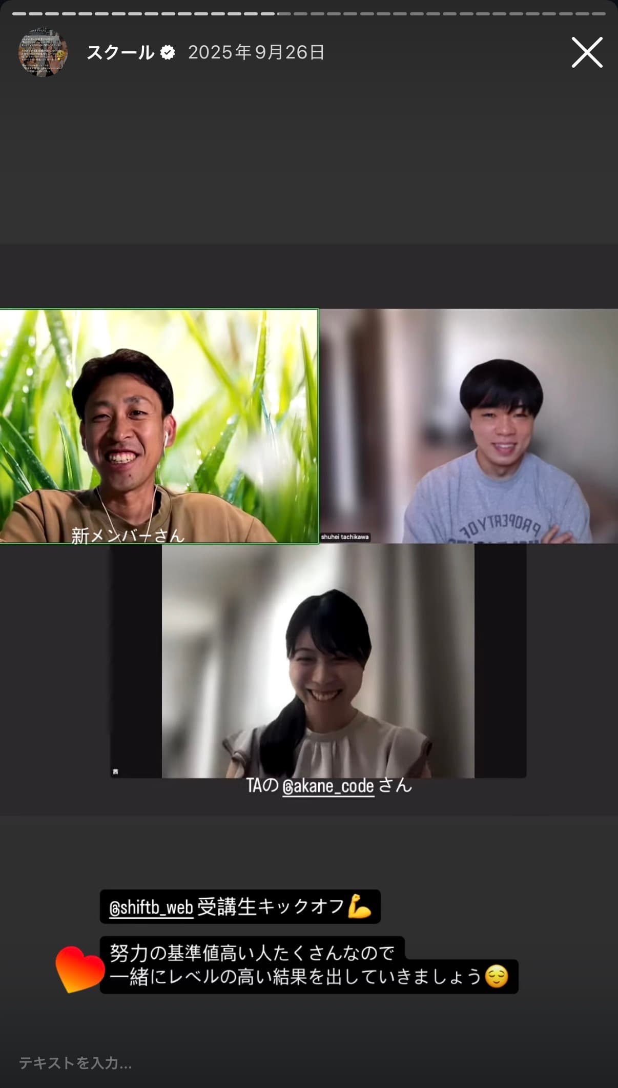 Instagramから生まれたスクール、受講生によるストーリーズ発信も活発。