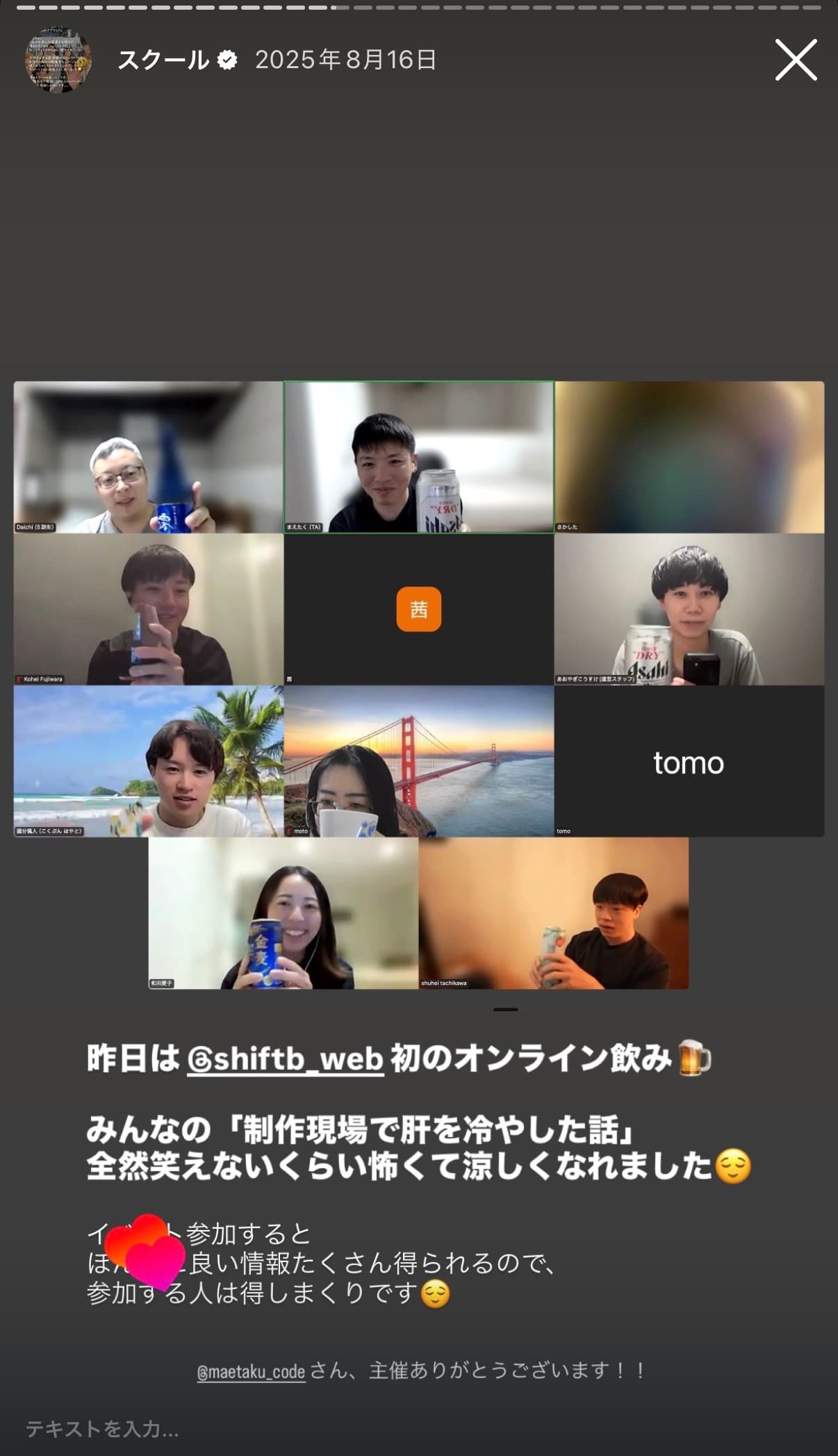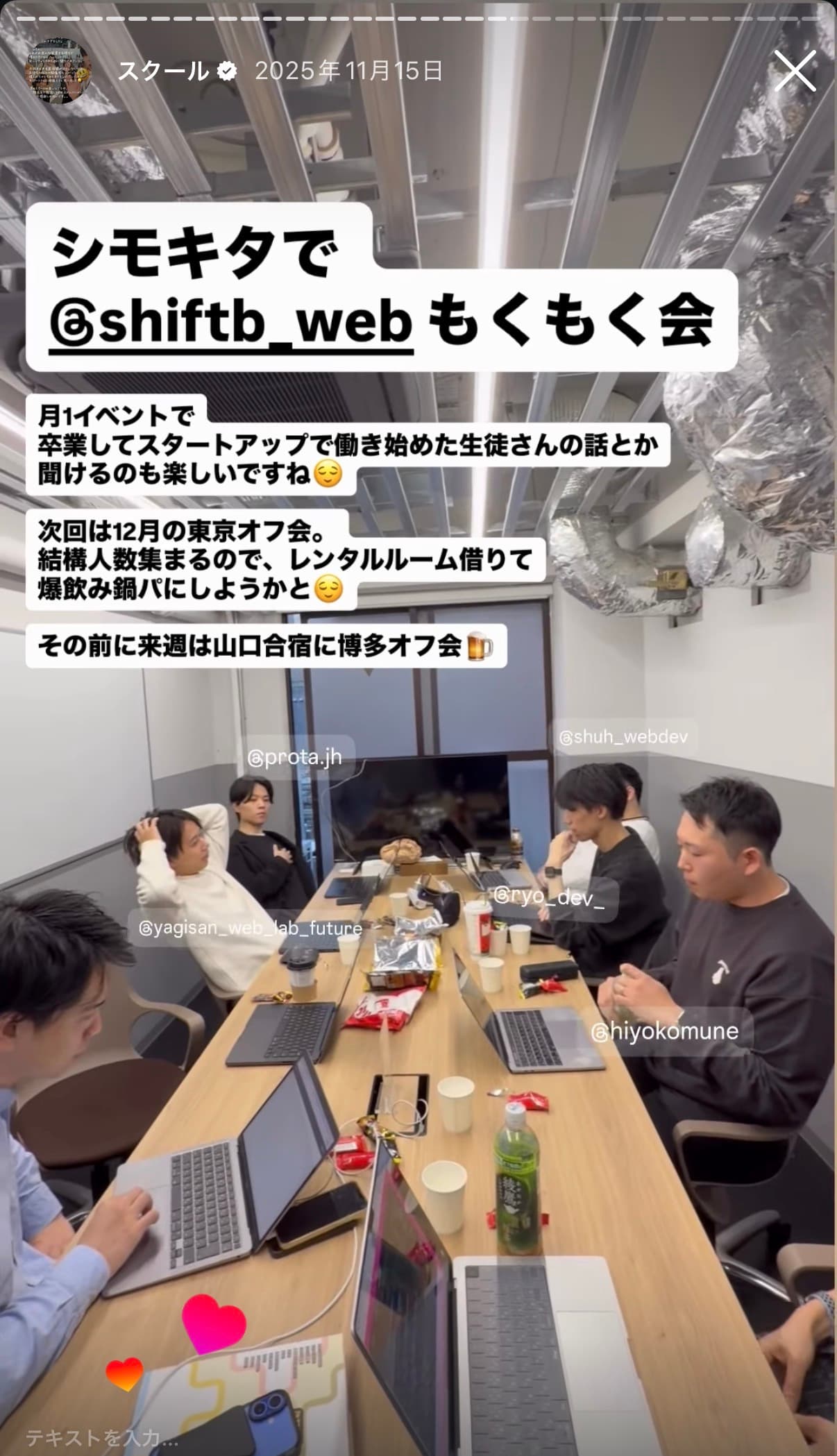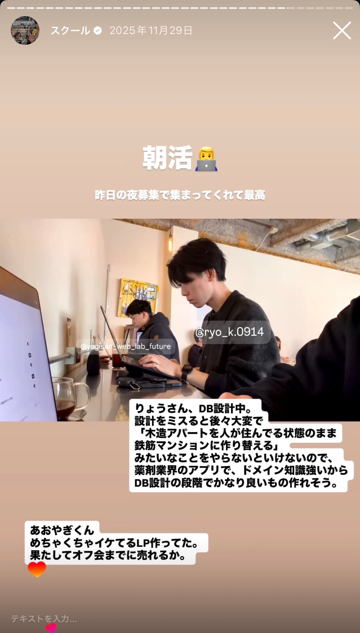 Instagramから生まれたスクール、受講生によるストーリーズ発信も活発。
